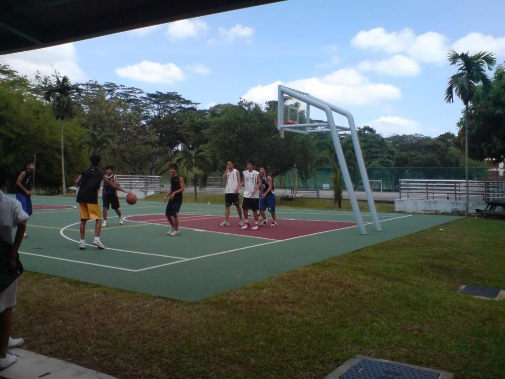 The clouds are so pretty they look fake don't they! The school was bustling with activities all round and we got to see people playing basketball! No shuai ones though (the shuai one's playing badminton... heh). :)