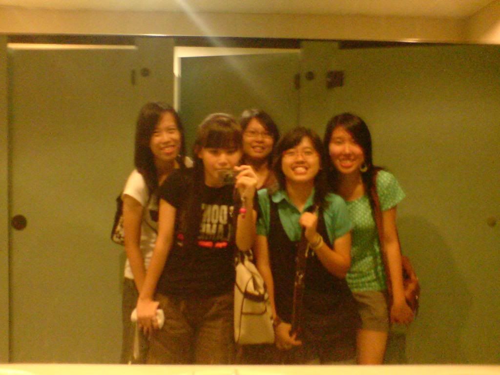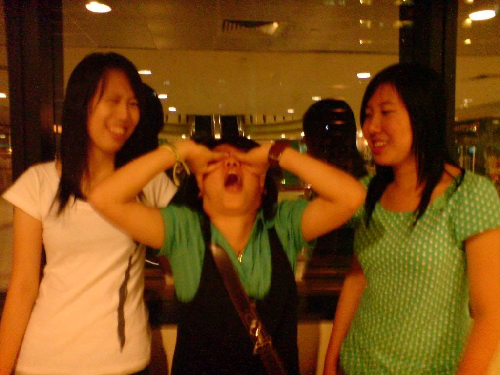 We took this photo in the lift. We were on the 6th floor and we didn't have enough time to retake it because someone boarded on the 5th floor. Sokmui is cut in this photo (must be karma, she keeps cutting people...) and Naomi's hands are down! :O